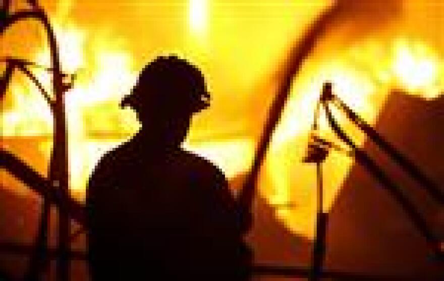 Initial reports indicate the fire at Pro-Fab Manufacturing is chemical in nature and that a bin of titanium shavings is burning. Firefighters donned protective gear as they battled the blaze on the city's west side.