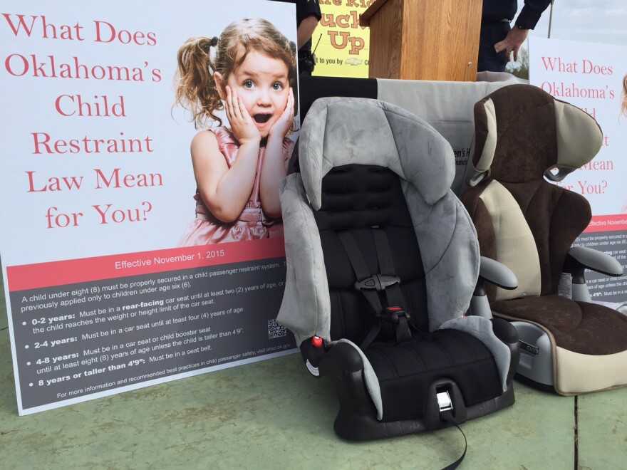 The legislation requires a child under the age of 2 to be secured in a rear-facing car seat. It was signed into law in June by Gov. Mary Fallin and takes effect Nov. 1.